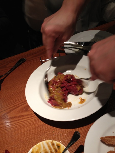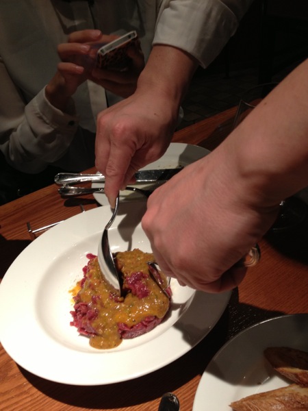 うまいといって、調子にのって食べていると、結構、どっしり。あまり食べ過ぎると、メインの肉が食べられないよー。