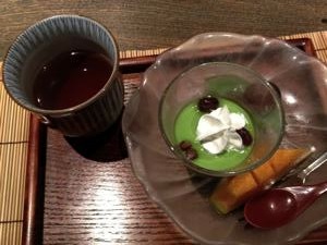デザートは、抹茶のブラマンジェ。メロン添え。
