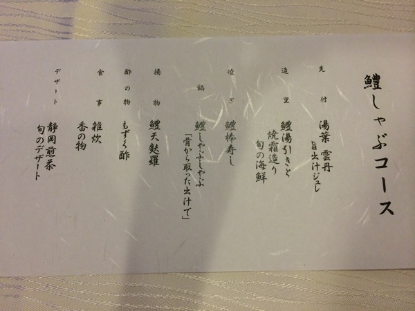 夕食の「鱧しゃぶコース」にめっちゃ期待。