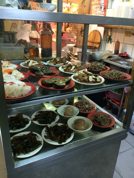 入り口付近には、小皿もあり。ピータン、煮玉子、空芯菜炒め、乾豆腐の煮物など、興味があったが、じっと我慢。