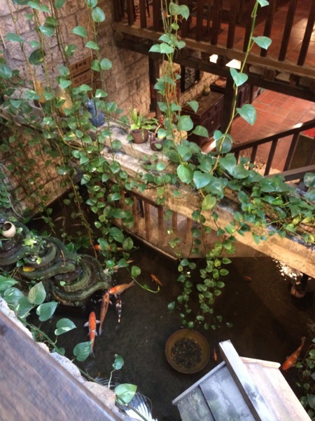 斜面にあるので、路面から入ったところの下へ行く階段があり、そこがお茶を飲めるスペースに。