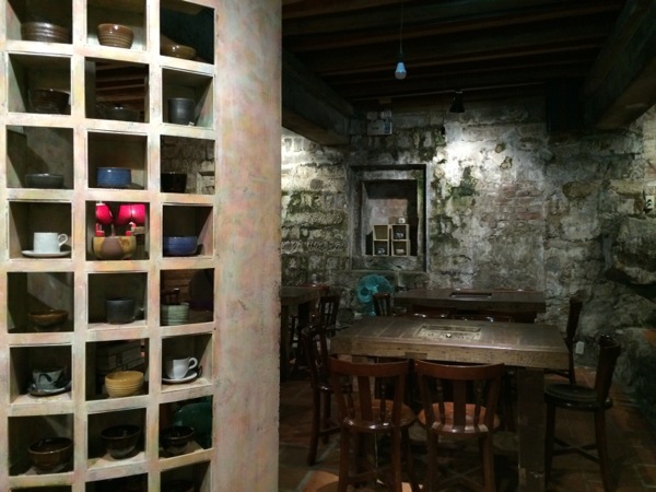 地下は、半分がカフェ、半分が茶器のギャラリーに。