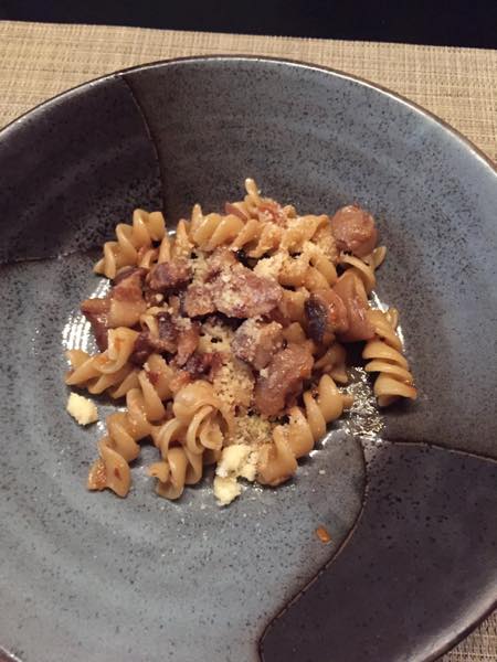 きのこを使ったミートソースのフジッリ。