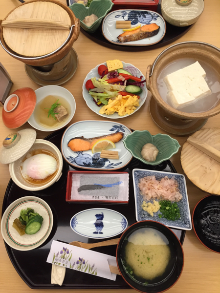 朝食は、鮭の焼き魚、海苔、温泉卵という温泉宿の定番。