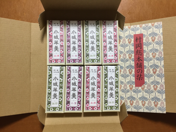 ここ地元名物の小城羊羹と、