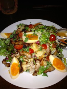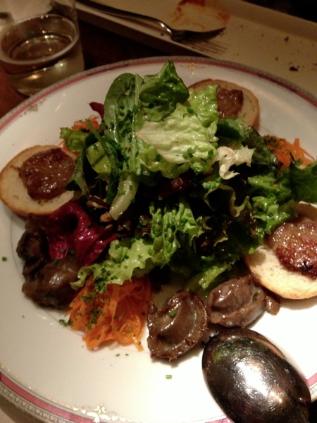 砂肝のコンフィのサラダ。ボリュームたっぷりで砂肝も入っておいしい。