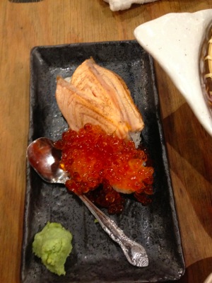 てんこ盛り炙りトロ鮭イクラ鮨 699円