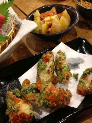 ちくわの磯辺揚と、じゃがバタ塩辛のせ。