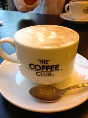 でもそこは店員がのんびりしてて、間に合わないかなと思い、タイ料理も食べられる、The Coffee Clubに入った。
