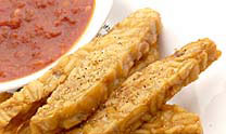 インドネシアの街中のテンペ屋台では、油で揚げたテンペに、レッドチリ中心のエスニック風「サンバルソース」をつけて食べるのが、最も手軽でポピュラーな食べ方です。