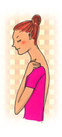 長時間同じ姿勢で仕事をしたり、ストレスで身体の緊張が続き、気や血の流れが滞っているタイプです。そうなると、肩や首筋の後ろから肩甲骨にかけて重苦しくなります。また、目が疲れたり、頭に疲労がたまったり、内臓が疲れていても、肩は凝ります。日頃から肩を大きくゆっくり回してみて、スムーズに回らないときは肩が凝っている証拠です。